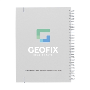 Artikel-Nr: CLPW12512WoW! Notizbuch im A5-Format. Mit 100 Blatt/200 Seiten liniertem Papier (80 g / m²), einer stabilen Wire-O-Bindung und einem Verschlussgummi. Der Hardcover-Einband besteht zu 15% aus landwirtschaftlichen und organischen Abfällen, z. B. von Tomaten, Paprika, Pflanzen und Zwiebeln. Diese Abfälle werden mit Recyclingpapier aus Europa gemischt. Ein praktisches Notizbuch, um Ideen zu notieren und festzuhalten.