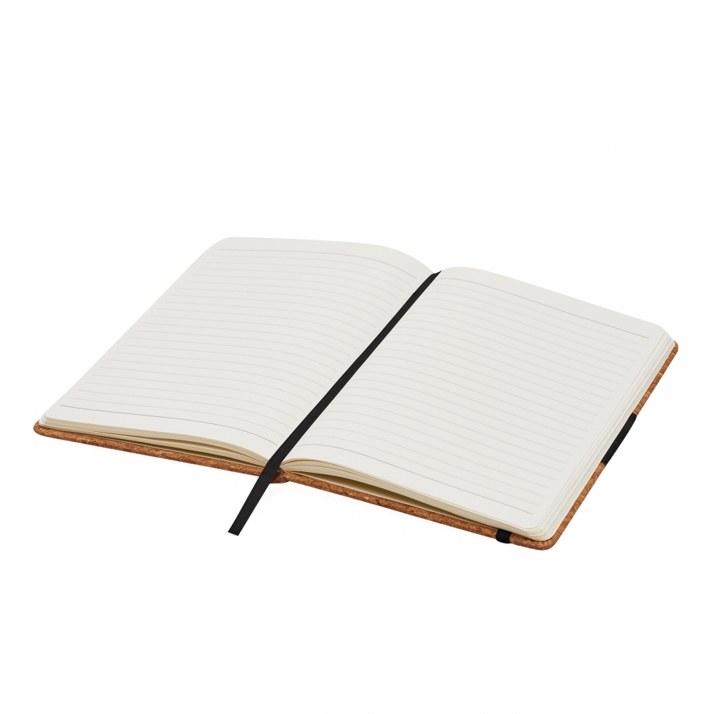Artikel-Nr: INP56-1103305Notizbuch AMBIENCE: im DIN-A5-Format mit abgerundeten Ecken, Gummiband zum Verschließen, mit integriertem Lesezeichen, 90 Blätter, liniert, 70 g / m² - Einband aus Kork mit PU-Zierstreifen