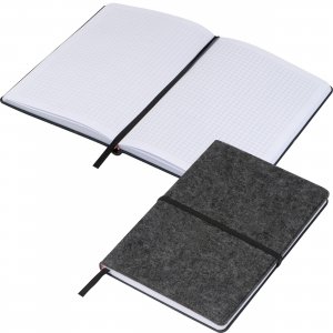 Artikel-Nr: MCM2135707A5 Notizbuch mit Filzumschlag, Lesebändchen, Gummibandverschluss und 192 karierten Seiten. Ihre Werbung wird auf das Cover gedruckt.
