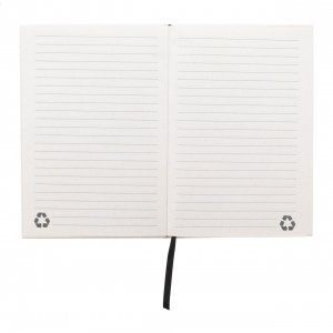 Artikel-Nr: AND800776-10Notizbuch aus recyceltem Milchkartonpapier mit festem Einband, 80 linierten Blättern und farblich passendem Gummiband. Format A5.
