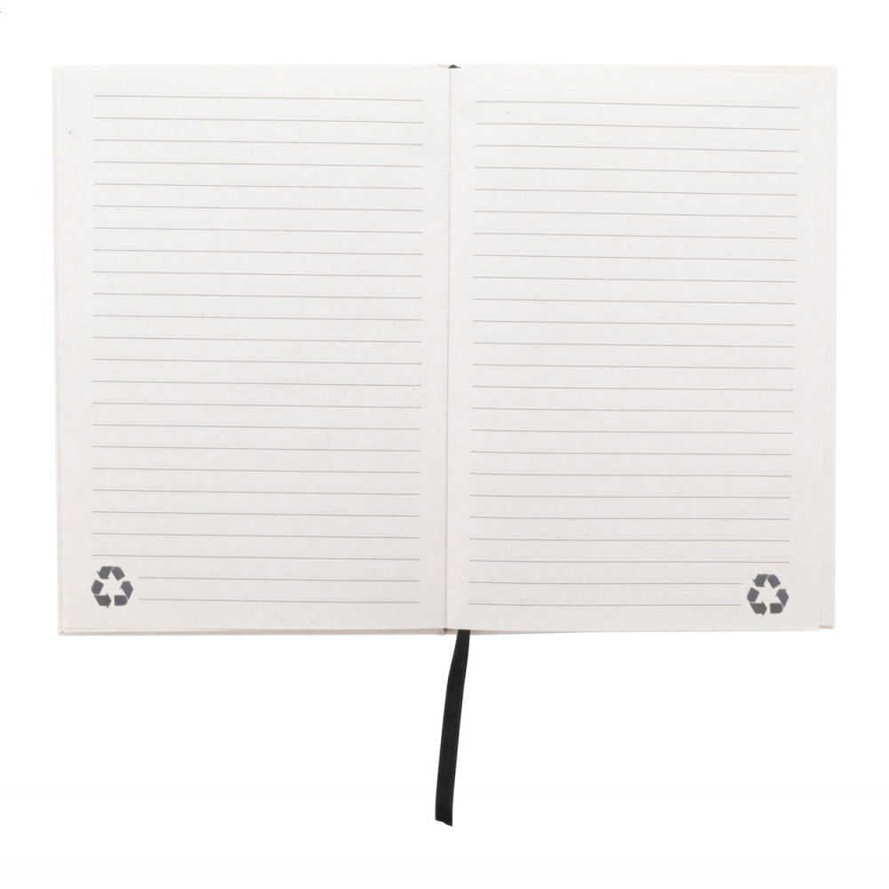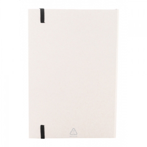 Artikel-Nr: AND800776-10Notizbuch aus recyceltem Milchkartonpapier mit festem Einband, 80 linierten Blättern und farblich passendem Gummiband. Format A5.