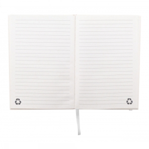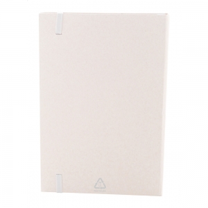 Artikel-Nr: AND800776-01Notizbuch aus recyceltem Milchkartonpapier mit festem Einband, 80 linierten Blättern und farblich passendem Gummiband. Format A5.