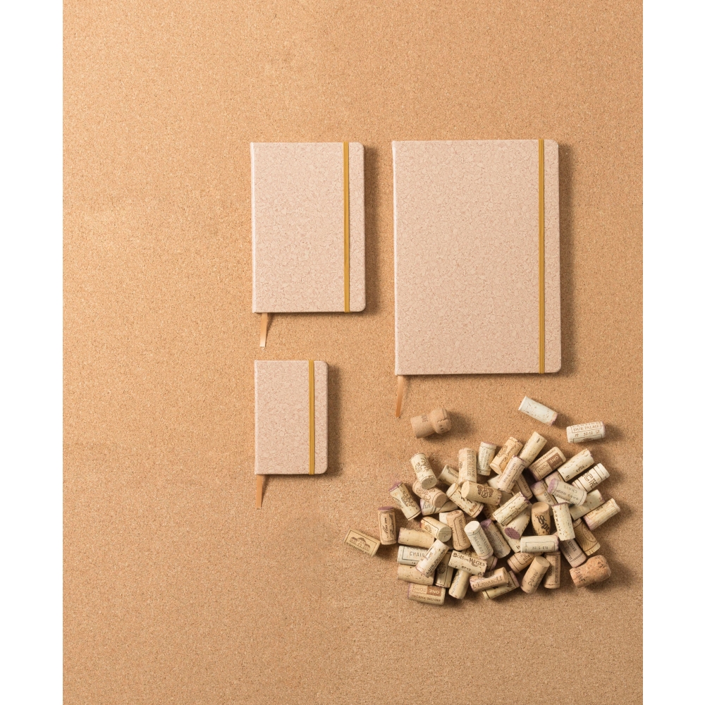 Artikel-Nr: GIV7257011Notizbuch aus PU in Korkoptik, ca. DIN A5-Format, mit 96 linierten Blättern, Lesezeichen und elastischem Band zum verschließen.