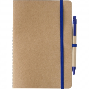 Artikel-Nr: GIV1015152004Notizbuch aus recyceltem Karton (AA5) mit 120 blanken Seiten. Mit passendem Stift aus Pappe / Weidenstroh (blaue Tinte), Gummiband und Stiftschlaufe in derselben Farbe. Einzeln verpackt im Polybeutel.
