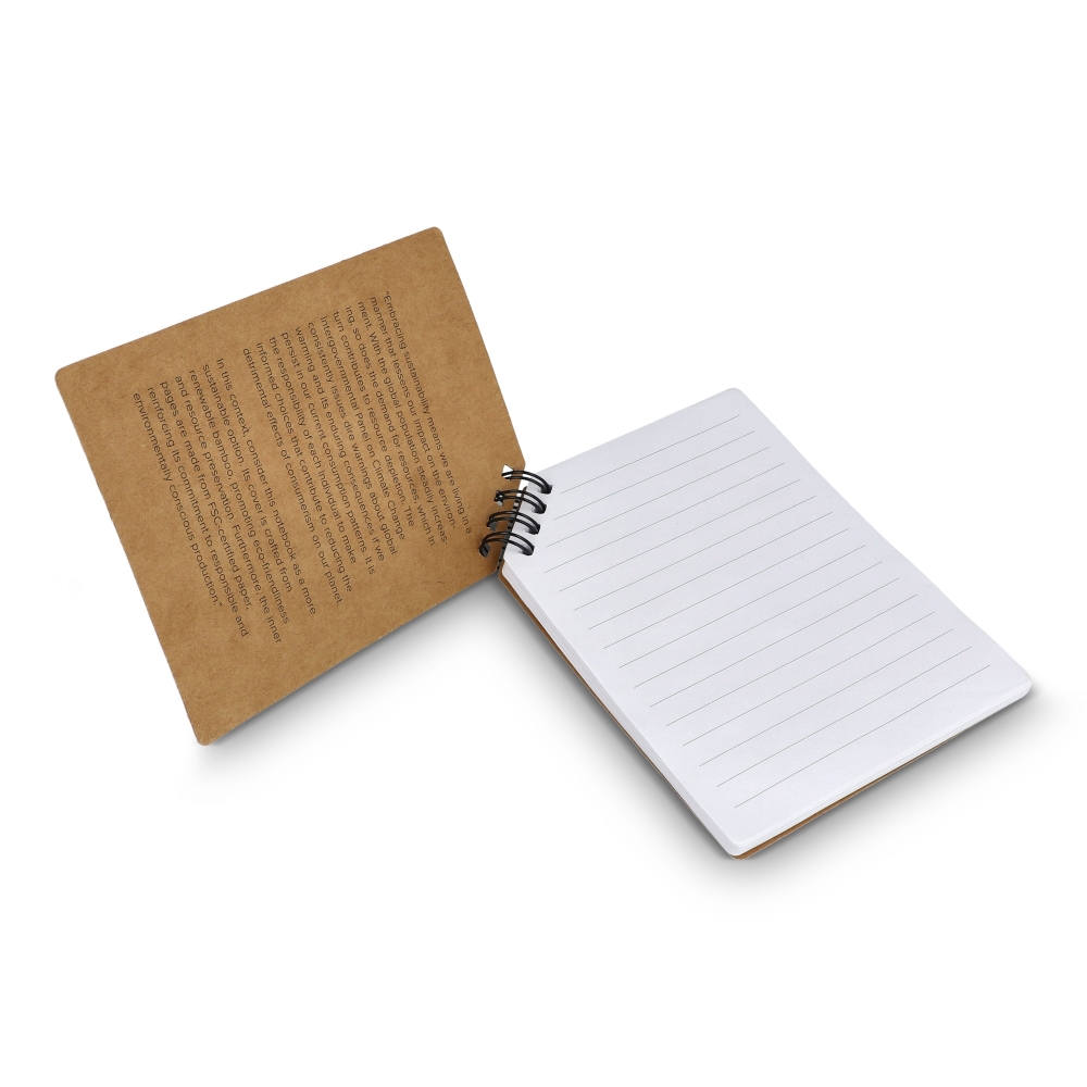 Artikel-Nr: ART92072N0094Erleben Sie Eleganz mit unserem A6 Bambus-Notizbuch mit Eckbindung. Kompakt in der Größe mit einer markanten Eckbindung verbindet dieses Notizbuch Komfort mit edlem Bambusdesign.
