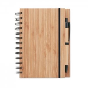 Artikel-Nr: OCBMO9435-40Notizbuch mit Deckel aus Bambus. 70 Blatt (140 Seiten) recyceltes Papier. Spiralbindung. Mit passendem Druckkugelschreiber aus Bambus, mit Drücker, Spitze und Clip aus ABS. Stiftschlaufe. Bambus ist ein natürliches Produkt, es kann daher zu leichten Abweichungen in Farbe, Dekor und Maßen kommen. FSC®-certified | FSC 100%, N5.7, FSC-C213206