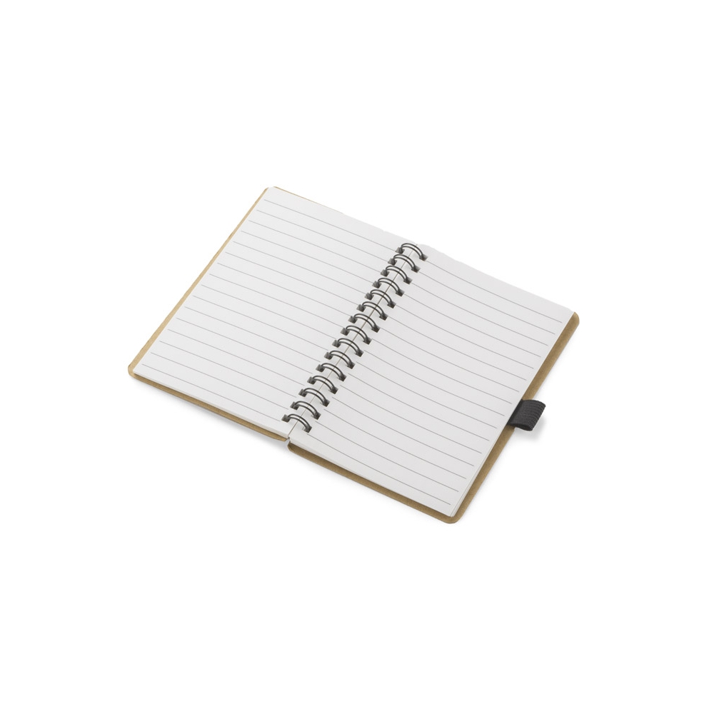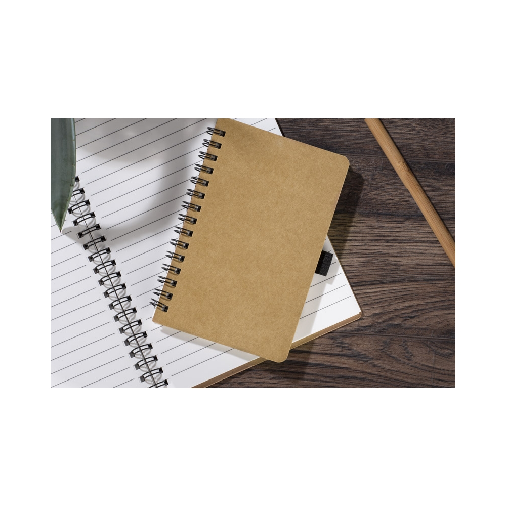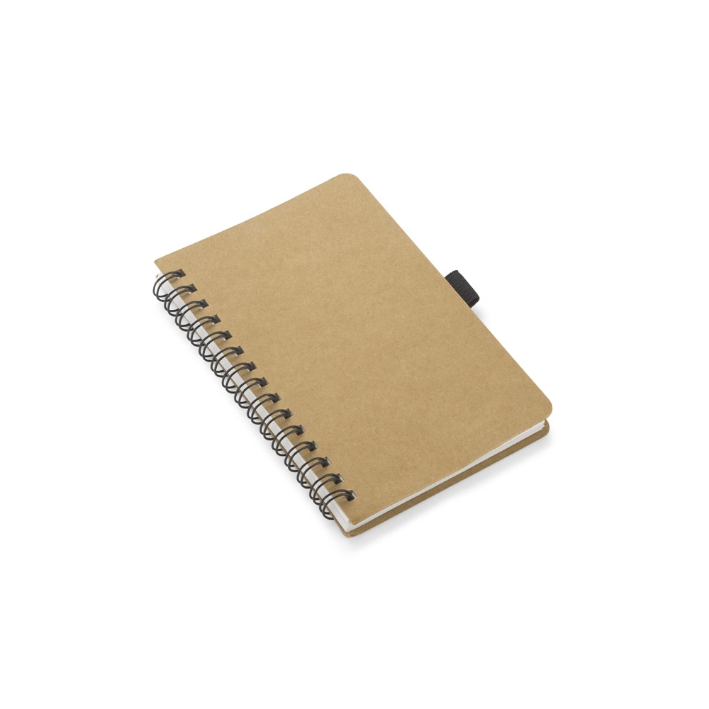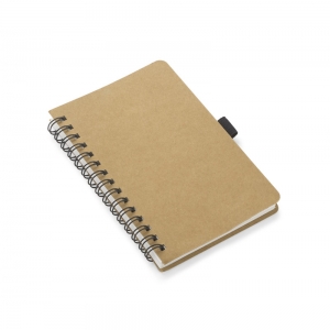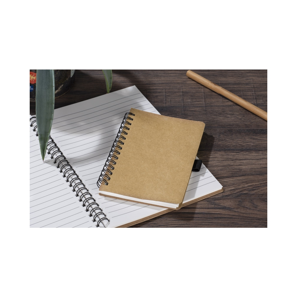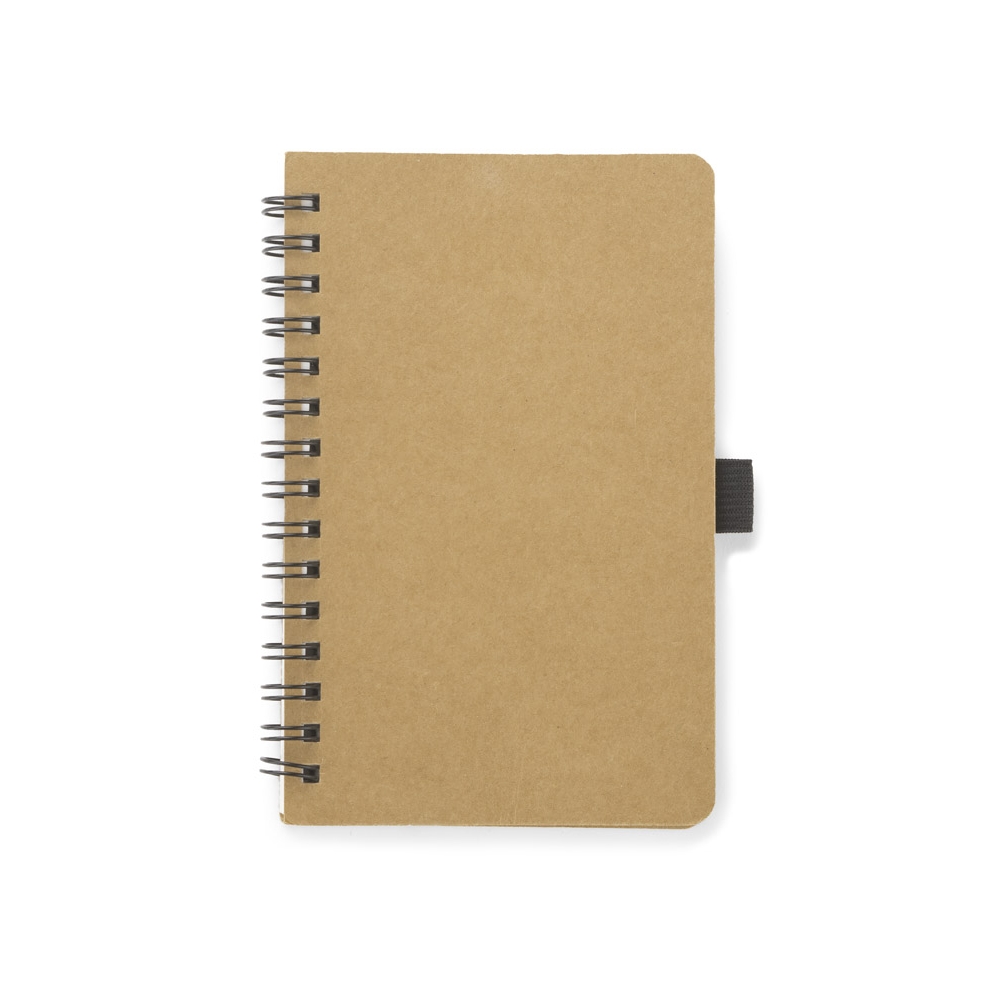 Artikel-Nr: ARD17877Klassisches Spiralnotizbuch mit braunem Papiereinband und Stifthalter. Die Seiten des Notizbuchs sind aus Steinpapier. Dieses Papier ist äußerst robust und feuchtigkeitsbeständig. Das Notizbuch hat 60 Seiten im A6-Format. Verpackt in einem biologisch abbaubaren Beutel.