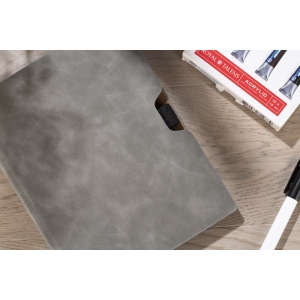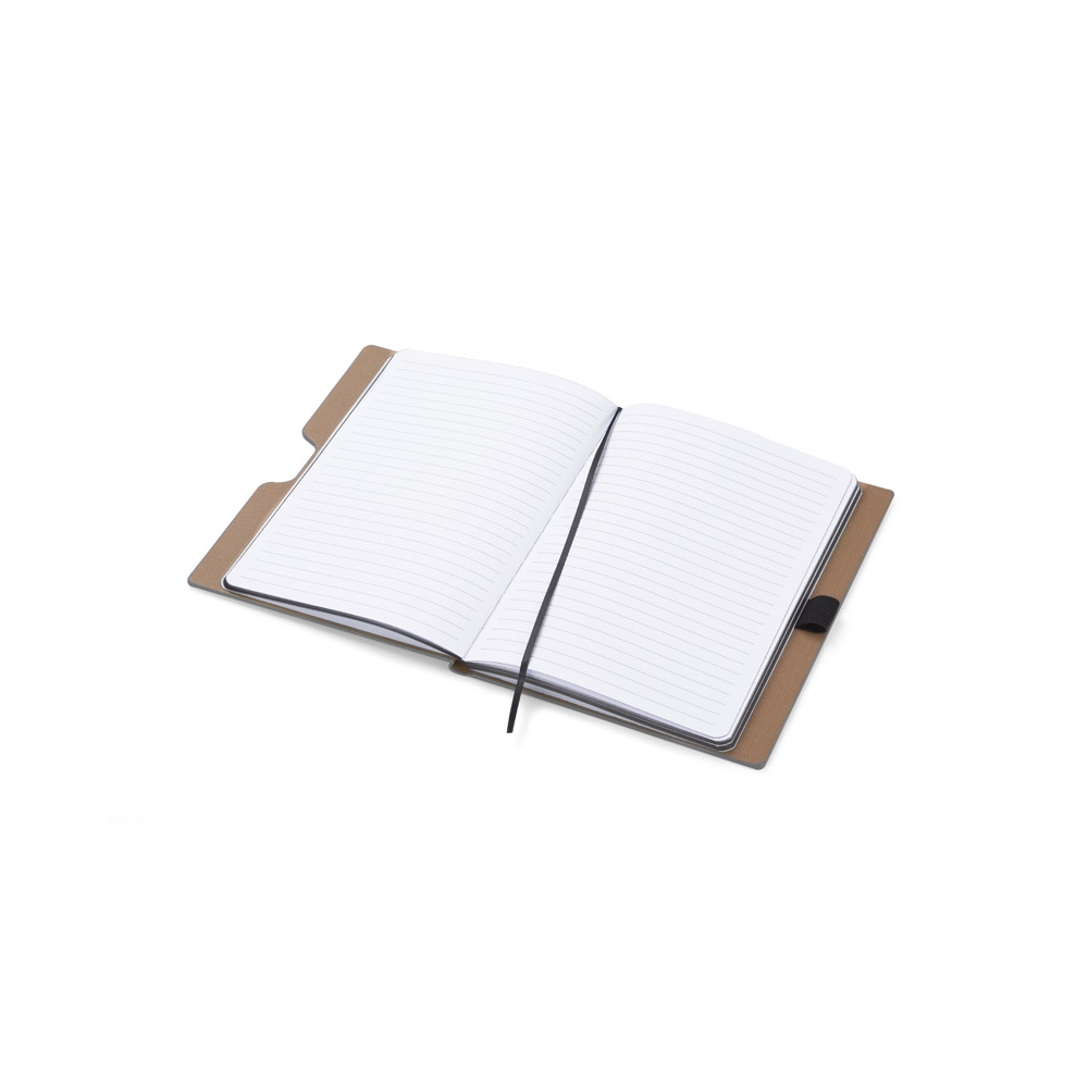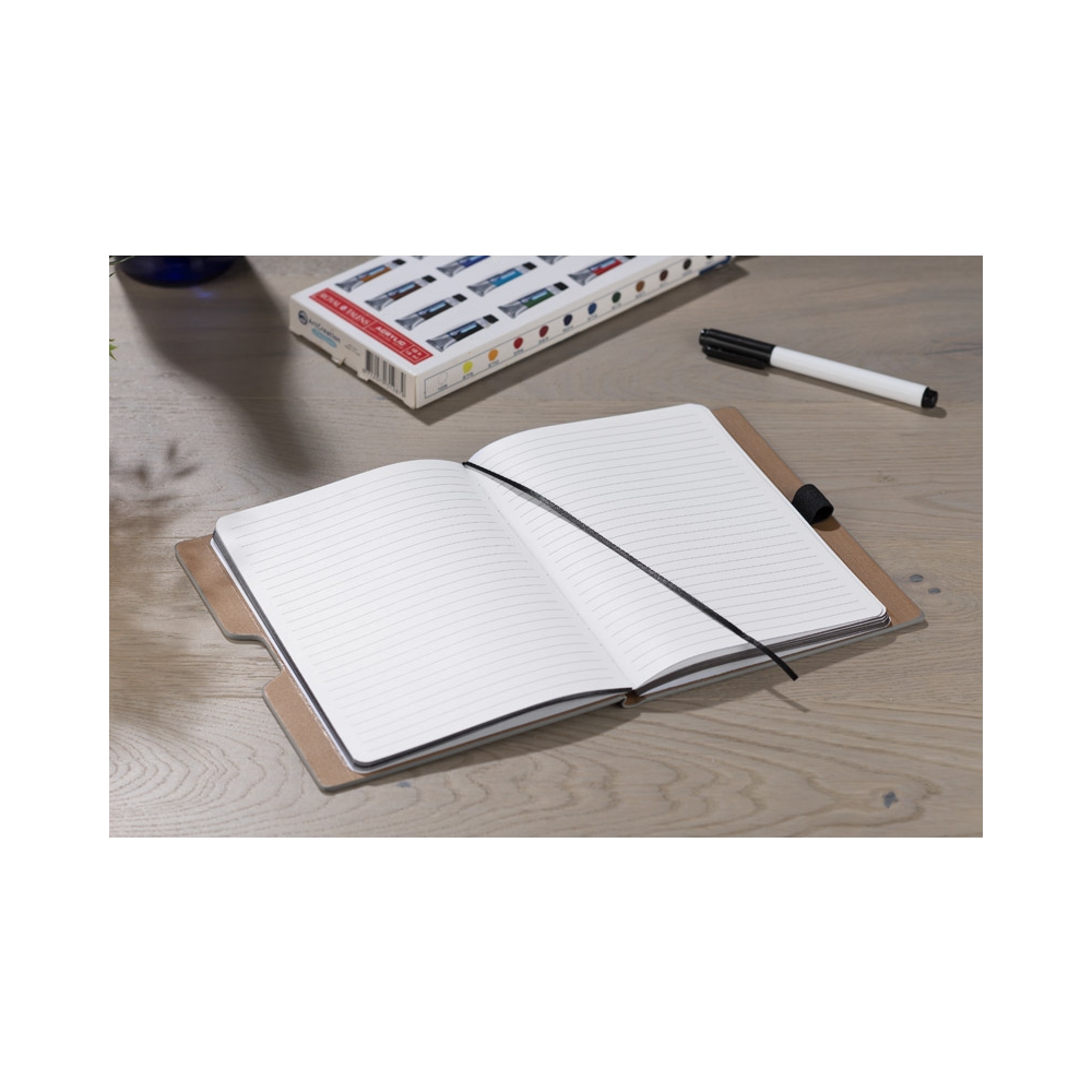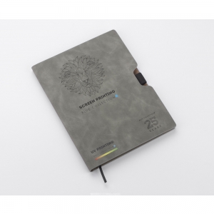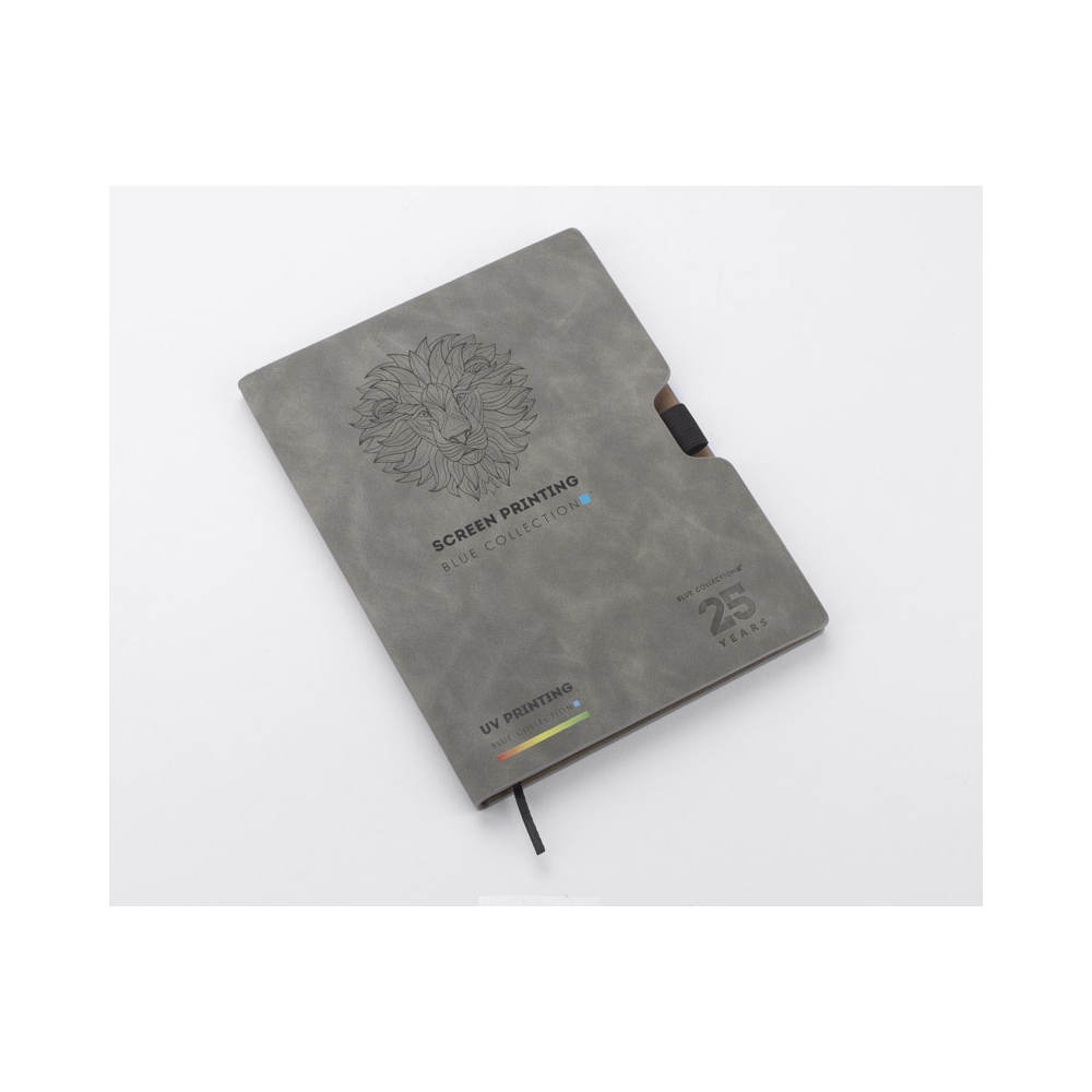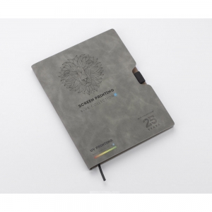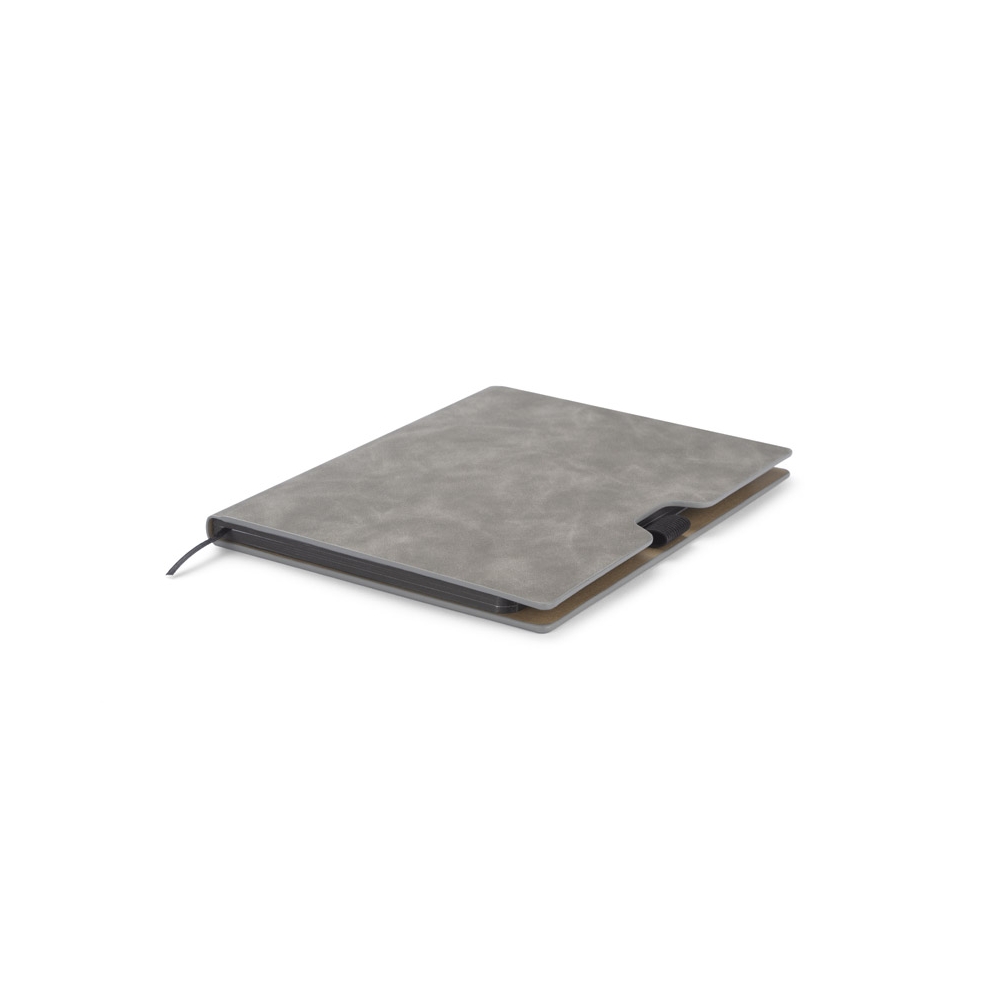 Artikel-Nr: ARD17716-02BLAKK ist ein klassisches Notizbuch mit einem Einband aus grauem lederähnlichem Material (PU). Die schwarzen Kanten der Seiten verleihen ihm ein elegantes Aussehen. Das Notizbuch enthält 80 Blatt weißes, liniertes Papier. Der Einband hat ein Gummiband - Stifthalter und ein schwarzes Lesezeichen mit Band.