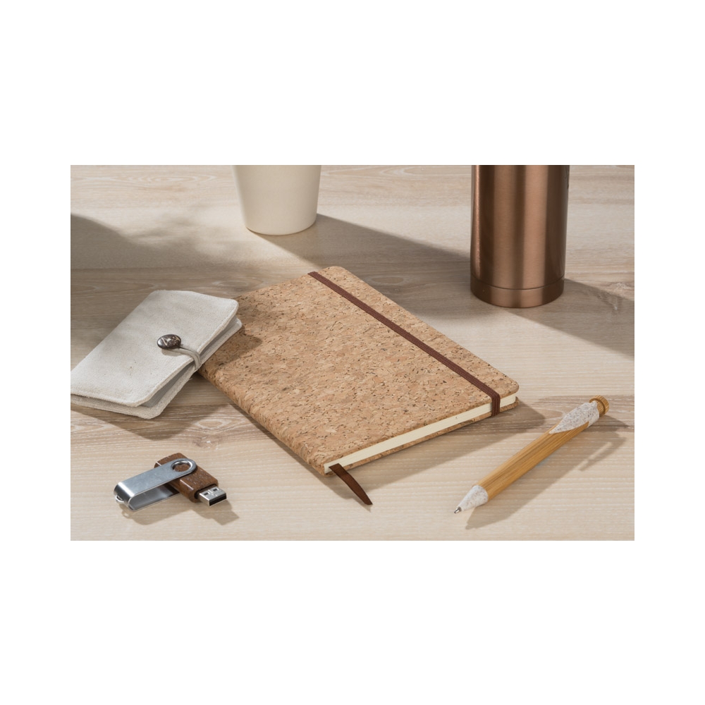 Artikel-Nr: ARD17831CORA ist ein Notizbuch im A5-Format. Es hat einen schönen verstärkten Umschlag aus Kork. Enthält 70 glatte Blätter in Ecru-Farbe. Mit einem Gummiband geschlossen.