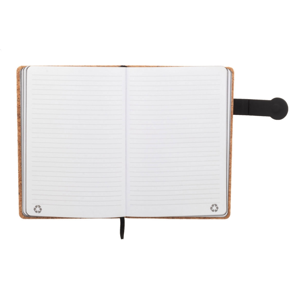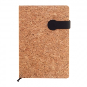 Artikel-Nr: AND800779-10A5 Notizbuch mit Umschlag aus natürlichem Kork und Kunstleder mit Magnetverschluss, Lesezeichen und 80 linierten Seiten aus Recyclingpapier mit farbigen Seiten.