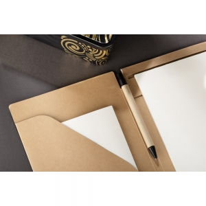 Artikel-Nr: ARD18212-17Das Notizbuch DELA im A5-Format ist ein praktisches Werbegeschenk aus Kraftpapier. Es enthält 40 glatte Seiten, einen Stift im Set und eine Tasche für lose Blätter, die eine bequeme Nutzung gewährleisten. Das schlichte und funktionale Design macht es ideal für den täglichen Gebrauch. Mit unserem Personalisierungsservice kann das Notizbuch vollständig an die Anforderungen Ihrer Marke angepasst werden. Es ist die perfekte Wahl für Geschäftstreffen, Veranstaltungen oder Werbekampagnen.