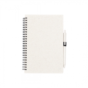Artikel-Nr: KTO20223013000Set aus Notizbuch und Stift. Ringnotizbuch mit Weizenrohrdeckel und Stifthalter. Mit 80 Blättern im Öko-Design und einstreifigem Layout. Kugelschreiber mit Druckknopfmechanik, Weizenrohrschaft und blauer Tinte. Mit Weizenstroh-Logo. Präsentiert in einer individuellen, recycelten Tasche. Hergestellt aus pflanzlichen Elementen, um die Verwendung natürlicher Rohstoffe zu fördern und Schadstoffemissionen zu reduzieren.