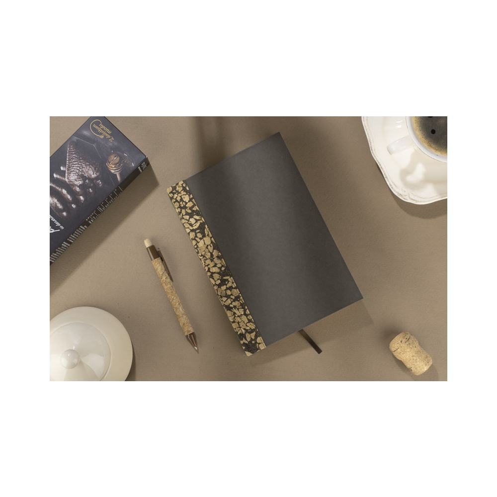 Artikel-Nr: ARD17790-09Notizbuch ESPRESSO - ein Produkt, das inspiriert und die Fantasie anregt. Sein Einband besteht aus gemahlenen Kaffeebohnen (15%) - dieses einzigartige Material verleiht ihm einen einzigartigen Charakter und macht es nicht nur zu einem Notizbuch, sondern auch zu einer kleinen Reise in die Welt der aromatischen Empfindungen. Die Rückseite des Notizbuchs, die an die Struktur von Kork erinnert, unterstreicht seinen ökologischen Charakter, denn sie besteht zu 30% aus gemahlenen Kaffeebohnen. Die 80 cremefarbenen, kraftvollen Seiten werden kreative Menschen begeistern, während das regelmäßige und dezent aufgedruckte Punktmuster für Ordnung in Ihren Notizen sorgt. Das Produkt ist in einem biologisch abbaubaren Beutel verpackt. Das Notizbuch ist im beliebten und praktischen A5-Format gestaltet.
