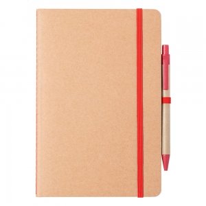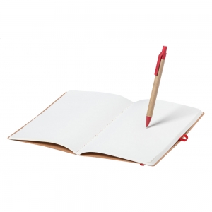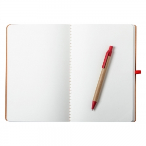 Artikel-Nr: AND721879-05A5 Notizbuch mit Umschlag aus recycleter Pappe, 60 Seiten (blanko), farbigem Gummiband und Kugelschreiber aus Weizenstroh-Kunststoff (blauschreibend).