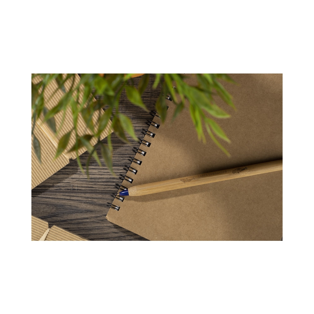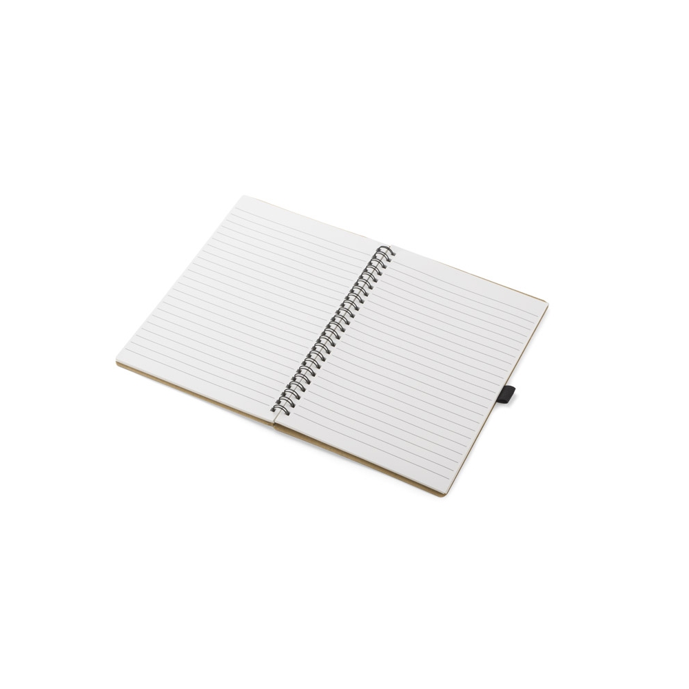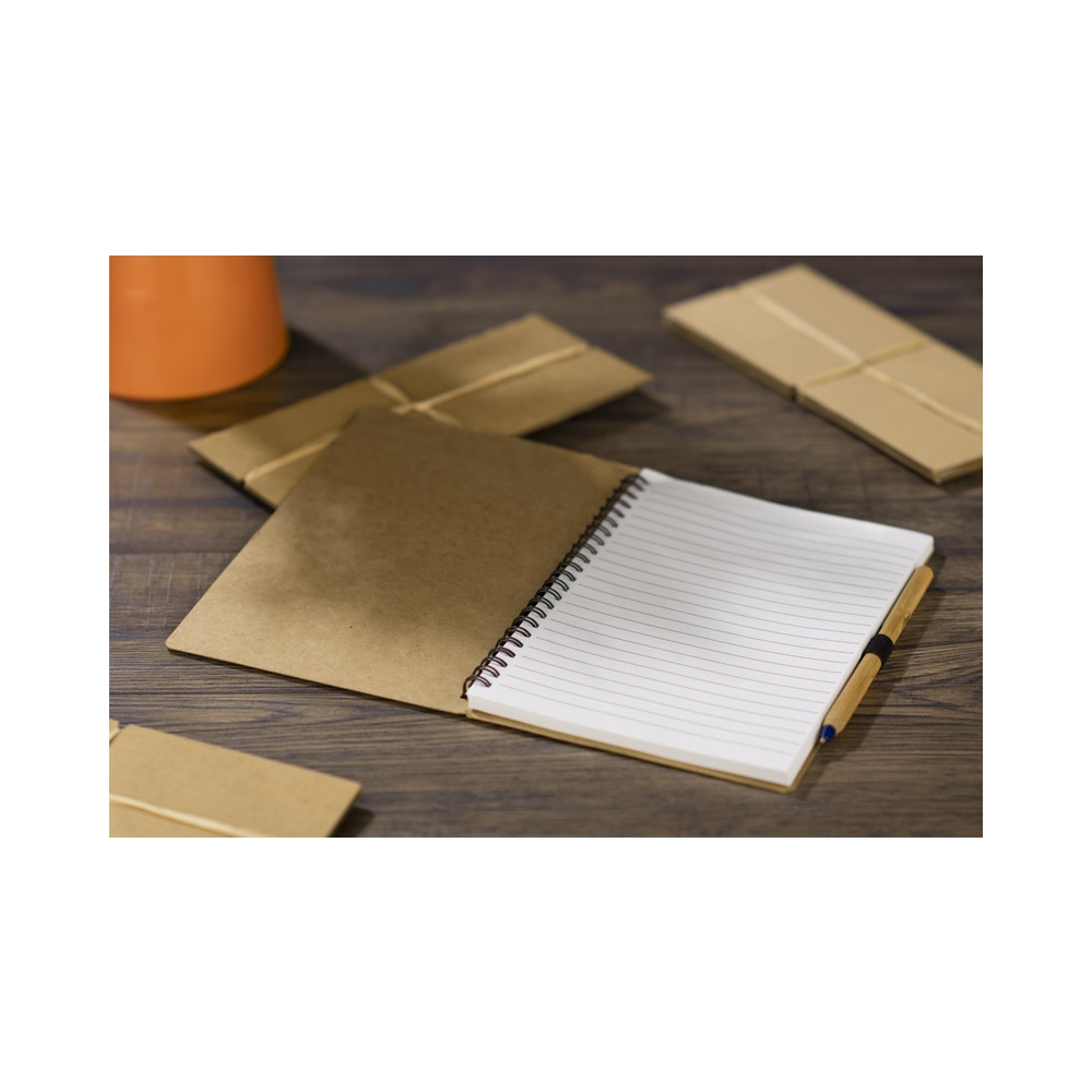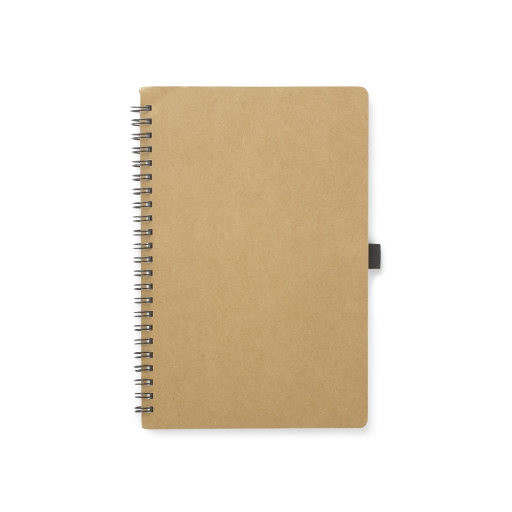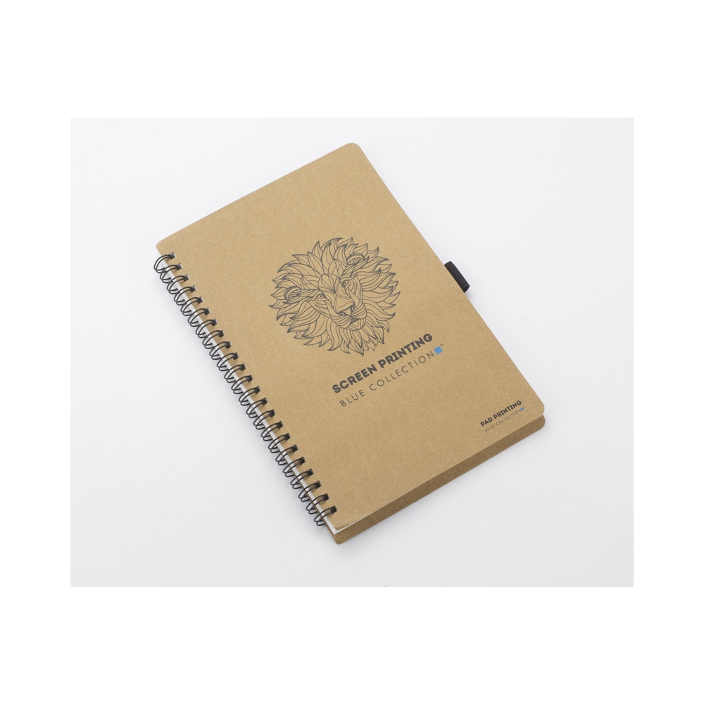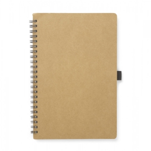 Artikel-Nr: ARD17876Klassisches Spiralnotizbuch mit braunem Papiereinband und Stifthalter. Die Seiten des Notizbuchs sind aus Steinpapier. Dieses Papier ist äußerst robust und feuchtigkeitsbeständig. Das Notizbuch hat 60 Seiten im A5-Format. Verpackt in einem biologisch abbaubaren Beutel.