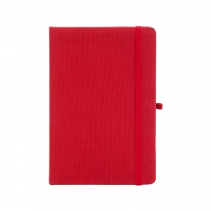 Artikel-Nr: AND800740-05Notizbuch mit Einband aus recycelter Baumwolle und 80 linierten Blättern aus Recyclingpapier. Mit farblich passendem Lesezeichen, Gummiband und Stifthalter. A5-Größe.