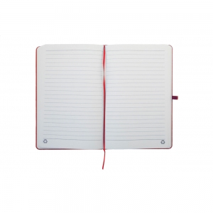 Artikel-Nr: AND800740-05Notizbuch mit Einband aus recycelter Baumwolle und 80 linierten Blättern aus Recyclingpapier. Mit farblich passendem Lesezeichen, Gummiband und Stifthalter. A5-Größe.