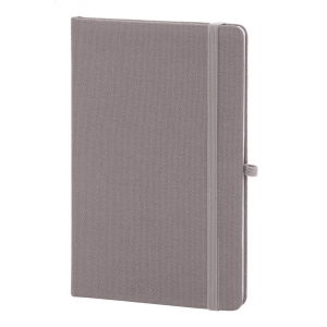 Artikel-Nr: AND800740-77Notizbuch mit Einband aus recycelter Baumwolle und 80 linierten Blättern aus Recyclingpapier. Mit farblich passendem Lesezeichen, Gummiband und Stifthalter. A5-Größe.