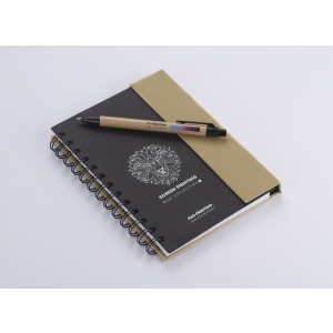 Artikel-Nr: ARD17585-02Spiralnotizbuch mit Magnetverschluss. 70 Blatt schwarz-liniert. Haftnotizen 25 Blatt. Inklusive Kugelschreiber. Das Logo wird mit der Tampondruckmethode.