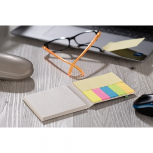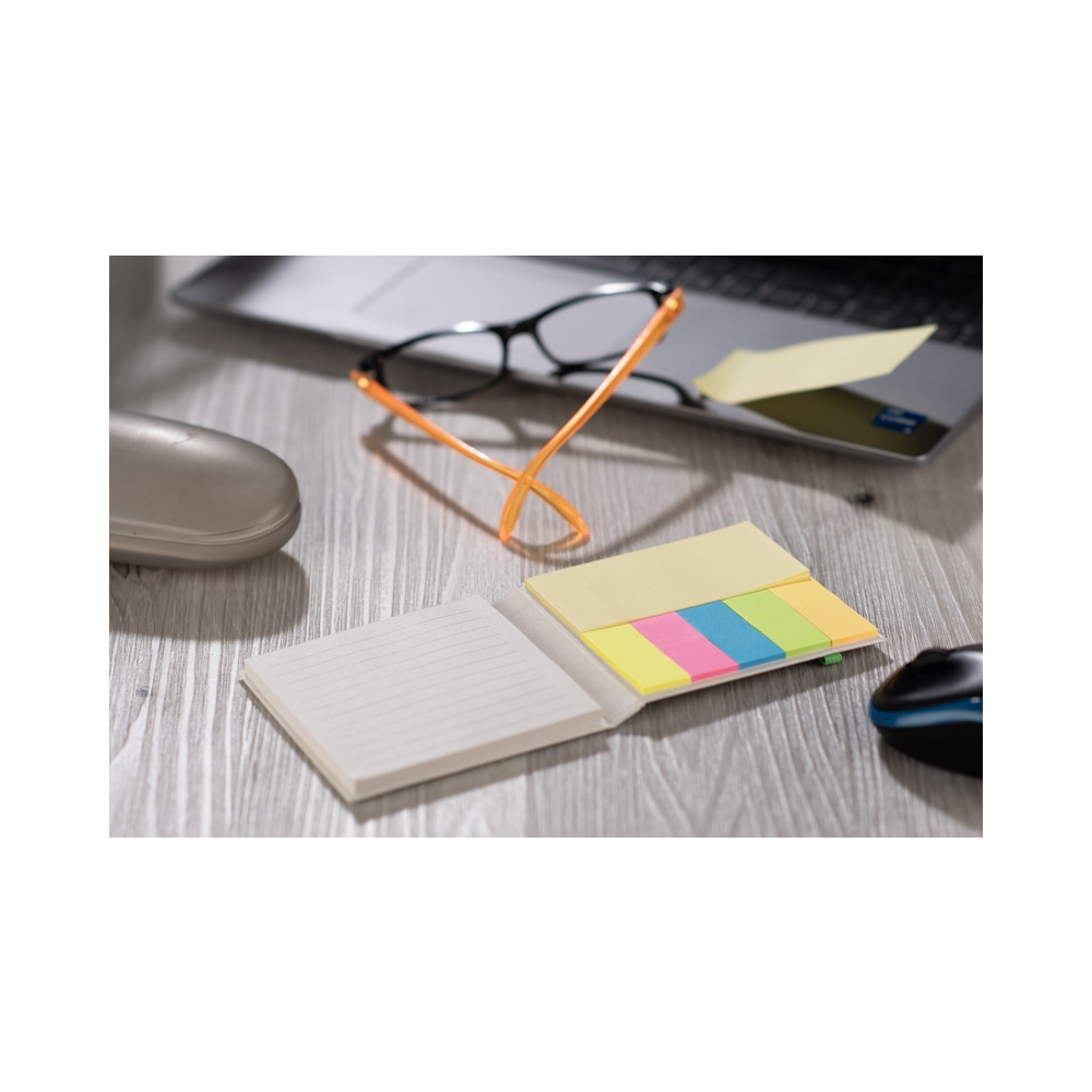 Artikel-Nr: ARD18207-13REZA Haftnotizen aus recyceltem Milchkartonpapier sind eine umweltfreundliche Lösung für Unternehmen, die auf der Suche nach nachhaltigen Büroartikeln sind. Das Set enthält farbige Haftnotizen, mittelgroße gelbe Post-it-Zettel und quadratische, linierte Post-it-Zettel, die alle bequem gefaltet und mit einem Gummiband verschließbar sind, mit Branding auf dem Umschlag.