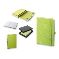 Artikel-Nr: 11253394-10Luxus-Notizbuch, 192 linierte Seiten. Letzte 32 Seiten mit Perforation. Laybook beinhaltet Gummiband mit Metallbutton für Schliessen, Schlaufe für Schreibgeräte, Innenfach.