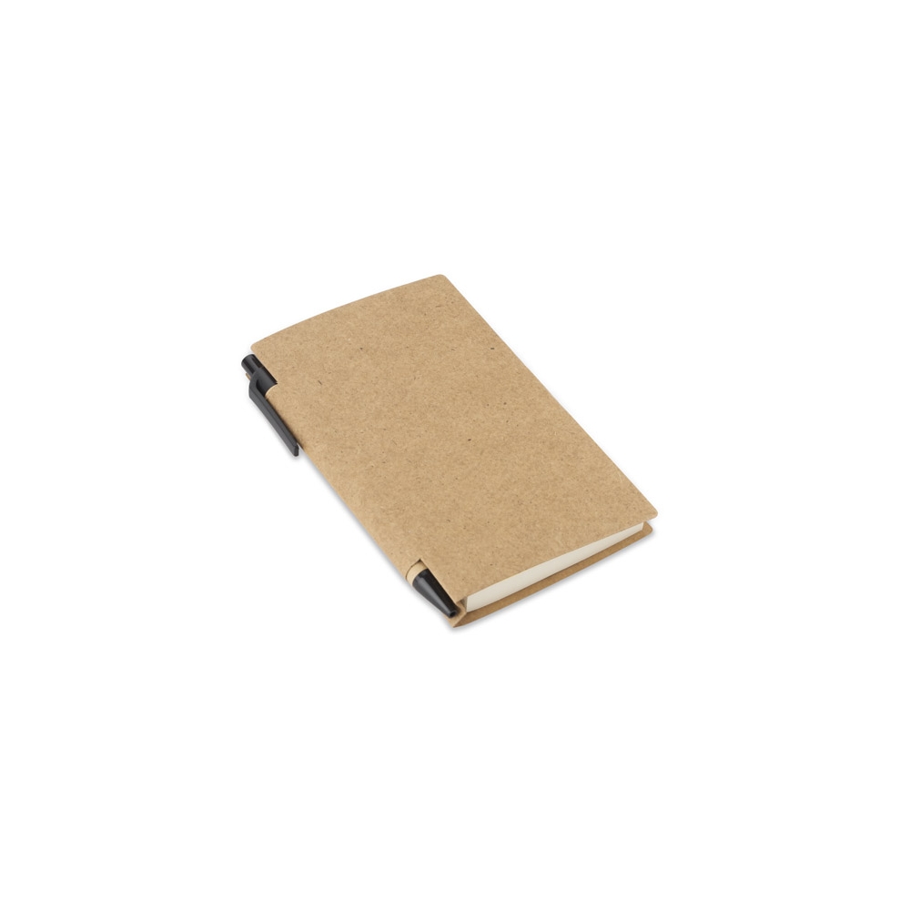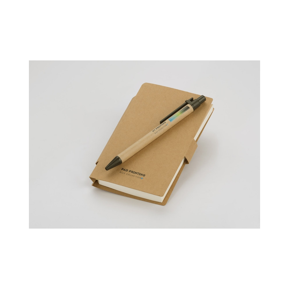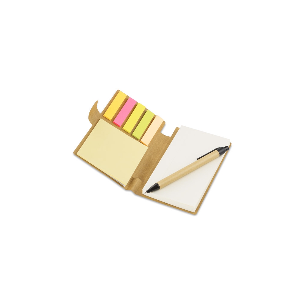 Artikel-Nr: ARD17133Notizbuch mit Haftnotizen und einem Kugelschreiber aus Pappe und recycelbarem Kunststoff. Schreibfarbe-schwarz. Kartoneinband. Das Logo wird auf dem Notuzbuch mit der Tampondruckmethode aufgetragen.