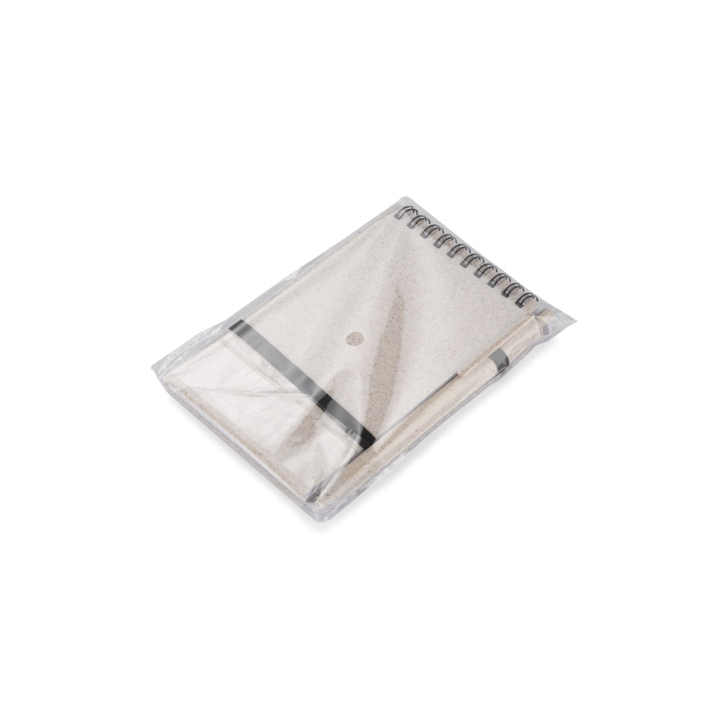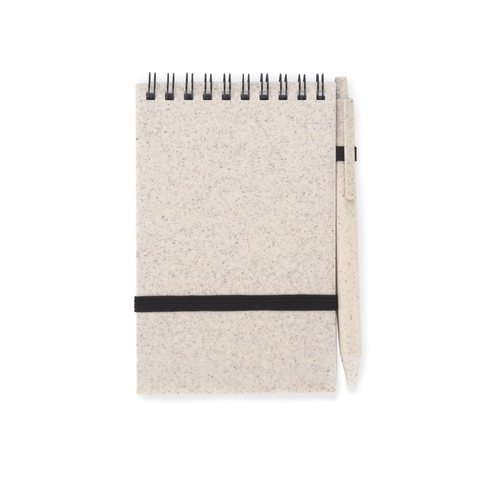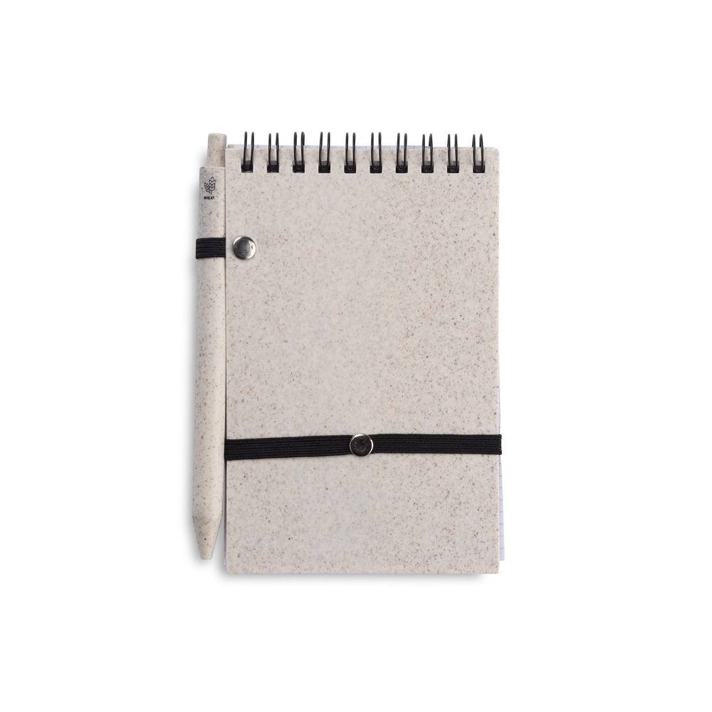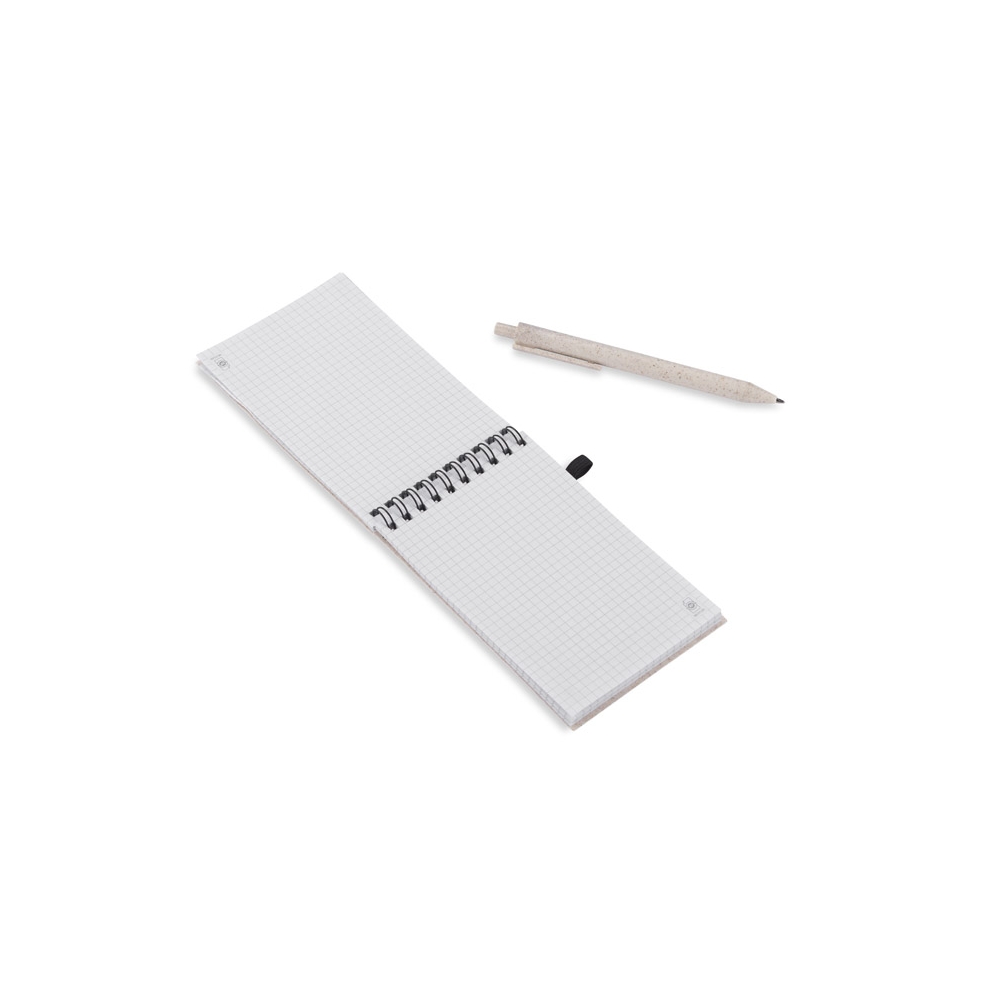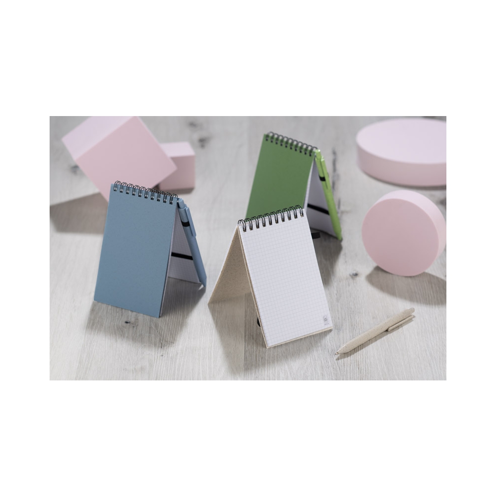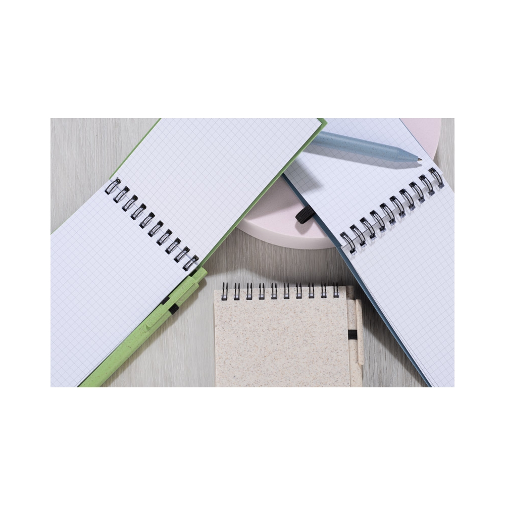 Artikel-Nr: ARD18001-17TRESA-Notizbuch mit Stift, farblich passend zum Einband. Der Stift und die Notizbuchhülle bestehen aus Weizenstroh. Ein Spiralnotizbuch mit 70 karierten Blättern aus Recyclingpapier. Mit Gummiband verschlossen. A6-Format. Blaue Kugelschreibermine.