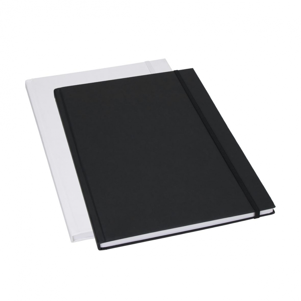 Artikel-Nr: ELT01002002-00000Optimal fürs Büro. Hardcover-Notizbuch mit 80 karierten Seiten, Gummiband zum Verschließen und einem Papiersteckfach auf der letzten Seite. Unempfindliches Außenmaterial durch besondere Beschichtung. Erhältlich in den Farben schwarz und weiß. Format: DIN A4.