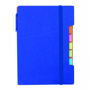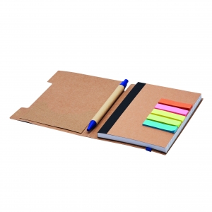 Artikel-Nr: INP56-1103279Notizbuch PENZ: im handlichen Format mit abgerundeten Ecken, inkl. Kugelschreiber aus Pappe (schwarzschreibend), farblich angepasstes Gummiband, 70 Blätter, 70g / m², 5 verschiedenfarbige Klebezettelblöcke – aus recycelbaren Materialien