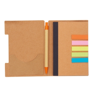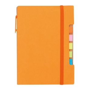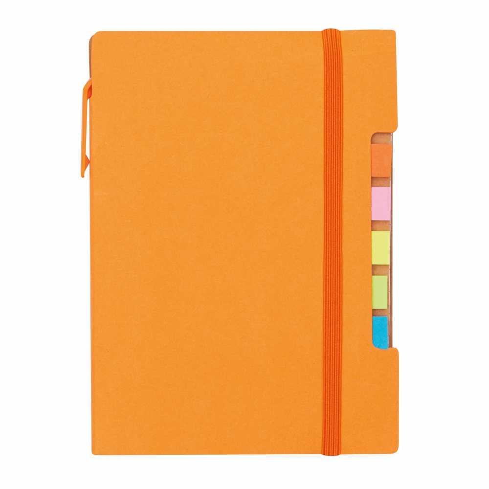Artikel-Nr: INP56-1103282Notizbuch PENZ: im handlichen Format mit abgerundeten Ecken, inkl. Kugelschreiber aus Pappe (schwarzschreibend), farblich angepasstes Gummiband, 70 Blätter, 70g / m², 5 verschiedenfarbige Klebezettelblöcke – aus recycelbaren Materialien