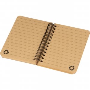 Artikel-Nr: EAG274013Kleines Notizbuch mit Spirallbindung, Bambuscover und 160 linierten Seiten aus recyceltem Papier. Ihre Werbung gravieren wir vorne auf das Cover.