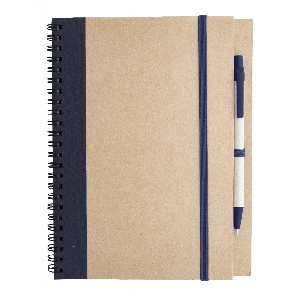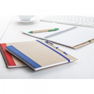 Artikel-Nr: AND791049-06AA5 Spiral-Notizbuch, 60 Seiten (blanko) und Kugelschreiber, blauschreibend, aus Recyclingpapier.
