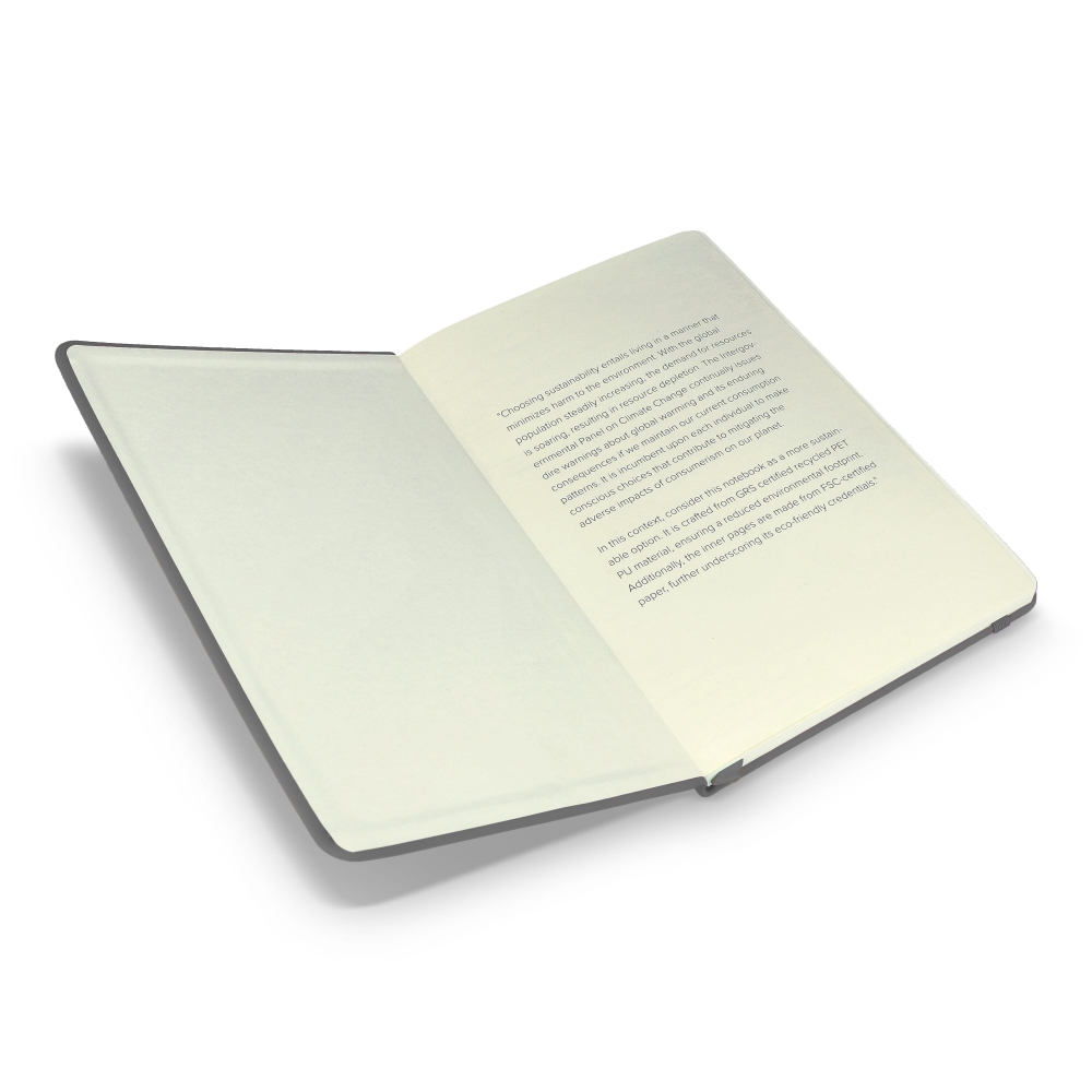 Artikel-Nr: ART92071N0061Wir präsentieren unser A5-Notizbuch mit FSC-Seiten! Hergestellt aus recycelten R-PET / PU-Materialien und versehen mit einem robusten Einband in edler Ausführung. Innen bieten linierte FSC-zertifizierte Seiten viel Platz für Ideen, Notizen und Pläne – ein verlässlicher Begleiter für Arbeit, Studium oder tägliche Organisation.