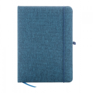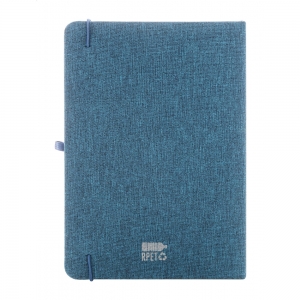 Artikel-Nr: AND800079-06A5 Notizbuch mit Cover aus 300D RPET Polyester mit 80 blanko Seiten und farblich abgestimten Gummiband, Lesezeichen sowie Stifteschlaufe.