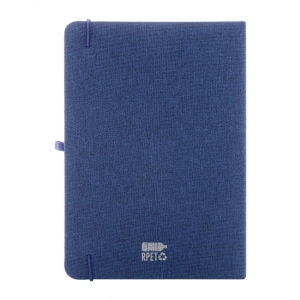 Artikel-Nr: AND800079-06AA5 Notizbuch mit Cover aus 300D RPET Polyester mit 80 blanko Seiten und farblich abgestimten Gummiband, Lesezeichen sowie Stifteschlaufe.