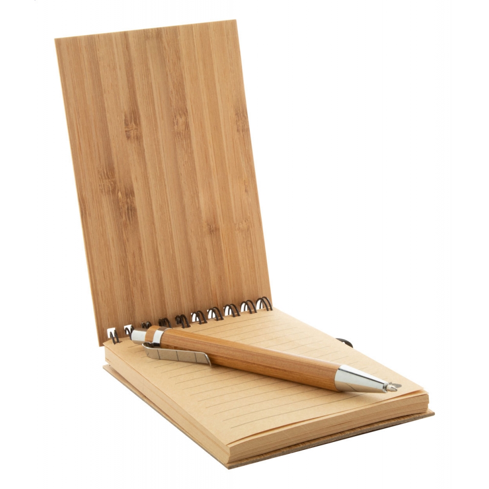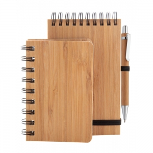 Artikel-Nr: AND721129Spiral-Notizbuch mit Bambusumschlag, 70 Seiten (liniert) und Bambuskugelschreiber, blauschreibend.