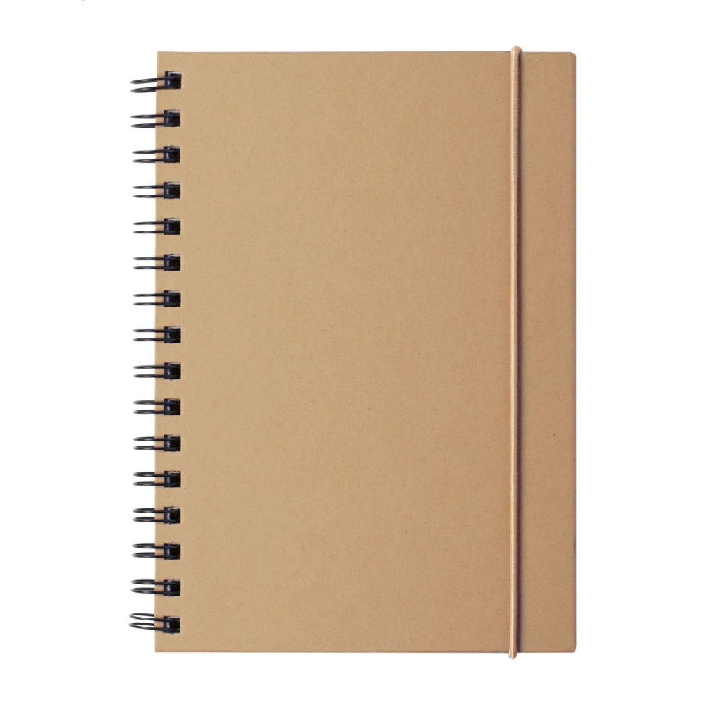 Artikel-Nr: AND721500-10Spiral-Notizbuch aus recyceltem Karton mit Gummiband. 80 linierte Seiten, Größe A5.