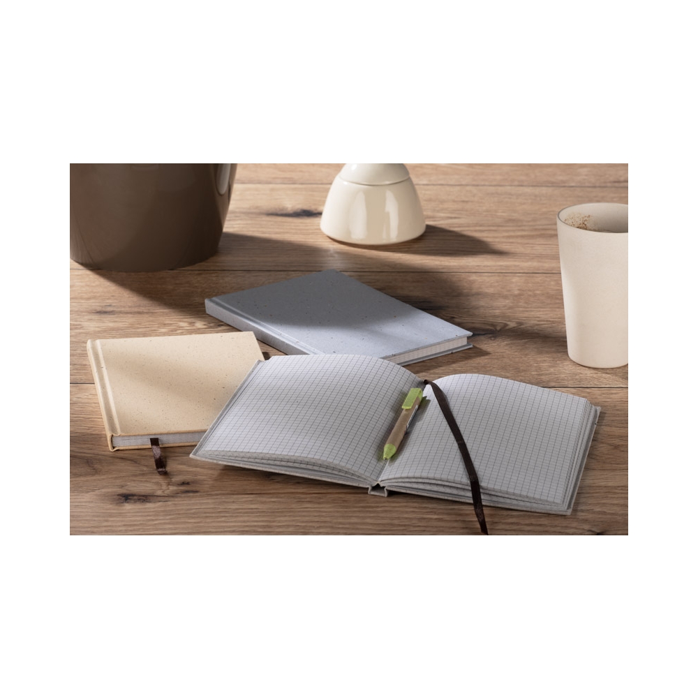 Artikel-Nr: ARD18209-17Das TEO-Notizbuch im A5-Format besticht durch seinen einzigartigen Einband aus Papier mit Teeblättern und Baumwolle, der ihm einen unverwechselbaren Charakter verleiht. Innen finden Sie karierte Seiten, die sich ideal zum Schreiben und Zeichnen eignen. Es ist ein praktisches und stilvolles Accessoire, das Langlebigkeit mit einzigartigem Design vereint.