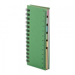 Artikel-Nr: AND800743-07Ökologisches, mit Einband aus Weizenstrohkunststoff, Spiralnotizbuch mit 40 linierten Blättern aus Recyclingpapier, 25 Haftnotizen und 125 Seitenmarkern (in 5 verschiedenen Farben). Mit 12 cm Lineal auf dem Einband.