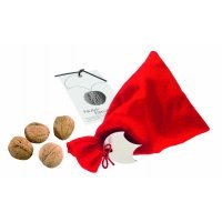 Inhalt: Filzsäckchen mit ca. 100 g Walnüssen, Edelstahl-Nussbreaker und Anhänge-Kärtchen.
