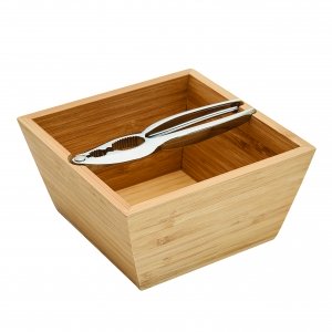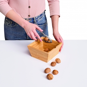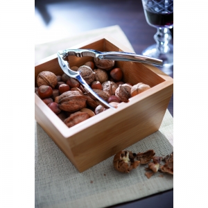 Artikel-Nr: INP56-0301098Nussknacker-Set CLICK: Bambus-Schale mit integrierten Auflageflächen für den Metall-Nussknacker, in Box