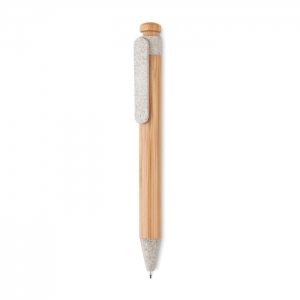 Artikel-Nr: OCBMO9481-13Druckkugelschreiber mit Schaft aus Bambus und Details aus umweltfreundlichen Weizenstrohhalm- und ABS-Kunststoff Gemisch (je 50%). Blaue Tinte. Bambus ist ein natürliches Produkt, es kann daher zu leichten Abweichungen in Farbe, Dekor und Maßen kommen. FSC®-certified | FSC 100%, N5.7, FSC-C213206