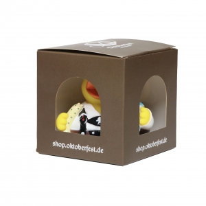 Artikel-Nr: GUT10008603"Jo mei, des is a schene Ent‘!" In ihrer Krachledernen schaut die Oktoberfest™ Ente "Bavaria" stets fesch aus - ein echtes Prachtexemplar mit Edelweiß-Stickerei, abgerundet mit dem Trachtenhut mit Gamsbart. So geht’s los und direkt auf die Festwiese! Eine Maß in einem, die Weißwurst im anderen Flügel und einzeln verpackt in einer hochwertigen Geschenkverpackung ist die Quietsche-Ente das perfekte Andenken und eine bleibende Erinnerung an das schönste und größte Volksfest der Welt! Lizenzprodukt - Oktoberfest™ ist eine Marke der Landeshauptstadt München.