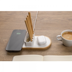 Artikel-Nr: XND308423Schneller 10W-Dual-Wireless-Charger mit Stifthalter aus RCS-zertifiziert (Recycled Claim Standard) recyceltem ABS. Gesamter Recyclinganteil: 31% basierend auf dem Gesamtgewicht des Artikels. Die RCS-Zertifizierung gewährleistet eine vollständig zertifizierte Lieferkette der recycelten Materialien. Die Basis besteht aus 100% FSC®Bambus. Kabelloses Laden ist kompatibel mit Android der neuesten Generation, iPhone 8 und höher. Kann zwei Telefone gleichzeitig oder jedes andere QI-fähige Gerät aufladen. Mit 4 Stiftlöchern zum Aufbewahren von Stiften sowie einer kleiner Ablage für z. B. Visitenkarten oder andere kleine Gegenstände. Artikel und Zubehör PVC-frei. Inklusive 120cm Type-C Kabel aus RCS-zertifiziertem Recycling-TPE. Verpackt in FSC®Mix Kraftkarton. Type-C Input: 5V/2A; 9V/2A; Wireless Output: 5V/1A; 9V/1,1A; (10W) Registered Design®