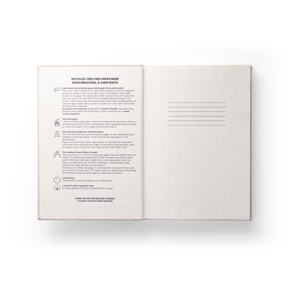 ORGANIC RIGID Notizbuch A5 mit Hardcover aus Elefantendung (80%)
