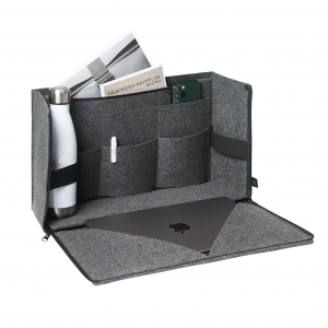 Artikel-Nr: HLF1818046-10Umfangreich ausgestatteter Organizer mit großem Hauptfach; Schnellöffnungsfunktion für mobiles Arbeiten; mit und ohne Überschlag nutzbar; gepolsterter Boden; Laptop-Halterung; flaches Einsteckfach auf der Front; zwei Einsteckfächer rückseitig; zwei Fixierungsschlaufen z. B. für Getränkeflasche; drei flache Einsteckfächer innen; drei Einsteckschlaufen innen; flache Reißverschluss-Tasche innen; längenverstellbare Tragegurte