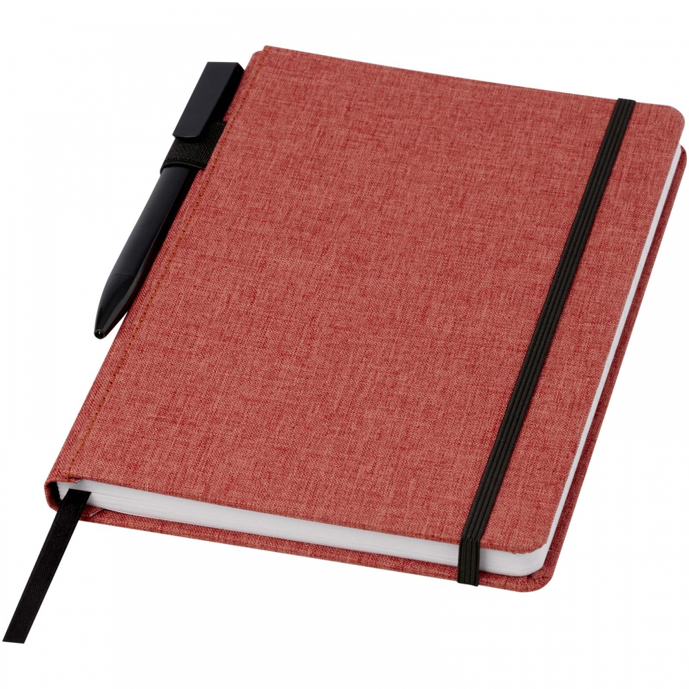 Artikel-Nr: CPO10774232A5 Notizbuch mit einem Cover aus RPET-Stoff. Mit 96 Blatt, 70 g / m² recyceltes Papier mit liniertem Layout, Stiftschlaufe und Leseband. Verpackt in einer Kartonhülle.
