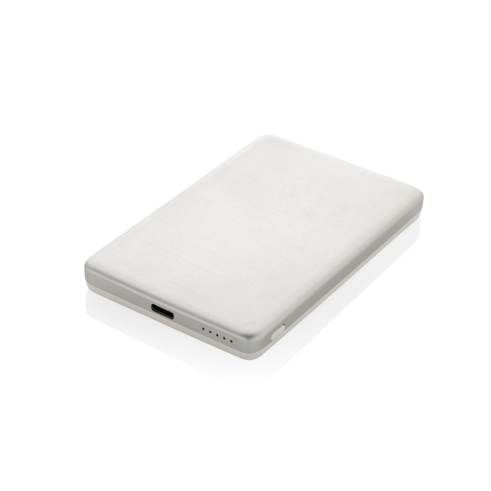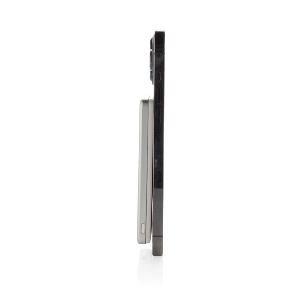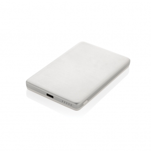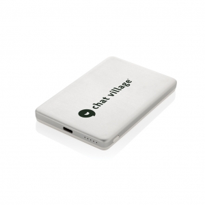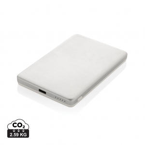 Artikel-Nr: XND3226002Ultradünne 5.000mAh Powerbank mit magnetischem, kabellosem 5W-Ladegerät, bei der das Gehäuse aus RCS-zertifiziert recyceltem Aluminium und recyceltem ABS-Kunststoff hergestellt ist. RCS (Recycled Claim Standard) ist ein Standard zur Überprüfung des Recyclinganteils eines Produkts über die gesamte Lieferkette hinweg. Recycelter Gesamtanteil: 23%, bezogen auf das Gesamtgewicht des Artikels. Die Powerbank enthält einen langlebigen 5.000mAh-A-Grade Lithium-Polymer-Akku. Die Ladestandsanzeige zeigt den verbleibenden Energiestand an, damit Sie immer wissen, wann Sie wieder aufladen müssen. Type-C-Input: 5V/2,4A; USB-C-Output: 5V/2A.4A. Artikel und Zubehör sind PVC-frei. Inklusive RCS-zertifiziert recyceltem TPE-Ladekabel. Verpackt in FSC®-Mix-Verpackung.