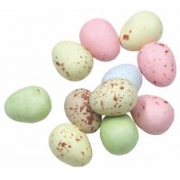 Artikel-Nr: 879100312 edle Dragee-Ostereier im Blister, Füllung B: Trüffel (150 g), Etikett: inkl. 4-c-Druck, Druckart: Digitaldruck (Euroskala)