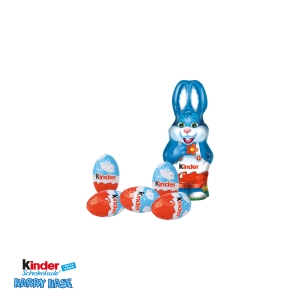 Inhalt: Kinder-Schokoladenmischung (ca. 40 g), bestehend aus 5 Stück Schokoladen-Eiern und einem Kinder "Harry Hase".